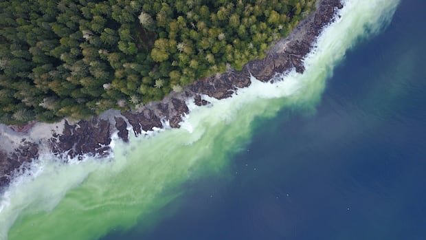 Ryan Cutler observed the ocean’s foamy appearance from his residence near Salmon Beach on the western side of Vancouver Island last week, signaling the commencement of the herring spawn. Cutler described the event as a truly magnificent time to witness. Utilizing his drone, he captured the distinctive milky blue-green water, a clear indication of the herring’s reproductive gathering in the shallow coastal bays.