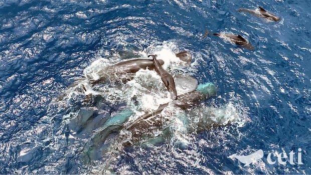 On a morning in July 2023, researchers studying whale communication off the coast of Dominica were surprised by a peculiar sight. Eleven whales, predominantly females, surfaced with their heads oriented towards each other, engaging in intense movements above and below the water. Subsequently, drones and microphones were deployed to document the event, which lasted approximately 30 minutes.
